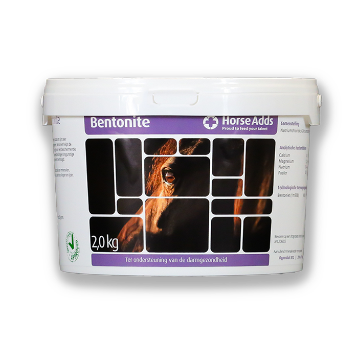 HorseAdds Bentonite is een kleisoort welke bekend staat om zijn zeer absorberende en bindende eigenschappen. Bentoniet helpt de mestconsistentie te verbeteren. Het zorgt voor een beschermende laag op darmwand, waardoor de weerstand tegen ongunstige bacteriën en schimmels in de darmen wordt verhoogd.